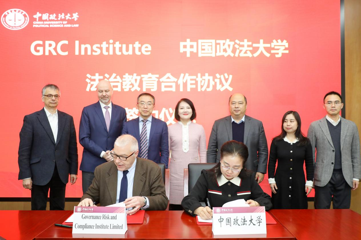 3月18日,我校与Governance Risk and Compliance Institute Limited(治理风险与合规学会)(以下简称GRC Institute)法治教育合作签约仪式暨企业合规审计、审核、调查专业能力建设与“走出去”合规治理研讨会在海淀校区举行。GRC Institute主席、ISO/TC 309组织治理技术委员会主席Kevin Brear、我校副校长刘艳红出席,中央政法培训学院执行院长、继续教育学院院长宋乃龙主持。